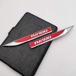 آرم فلزی بغل گلگیر چپ و راست نوشته torbo – قرمز