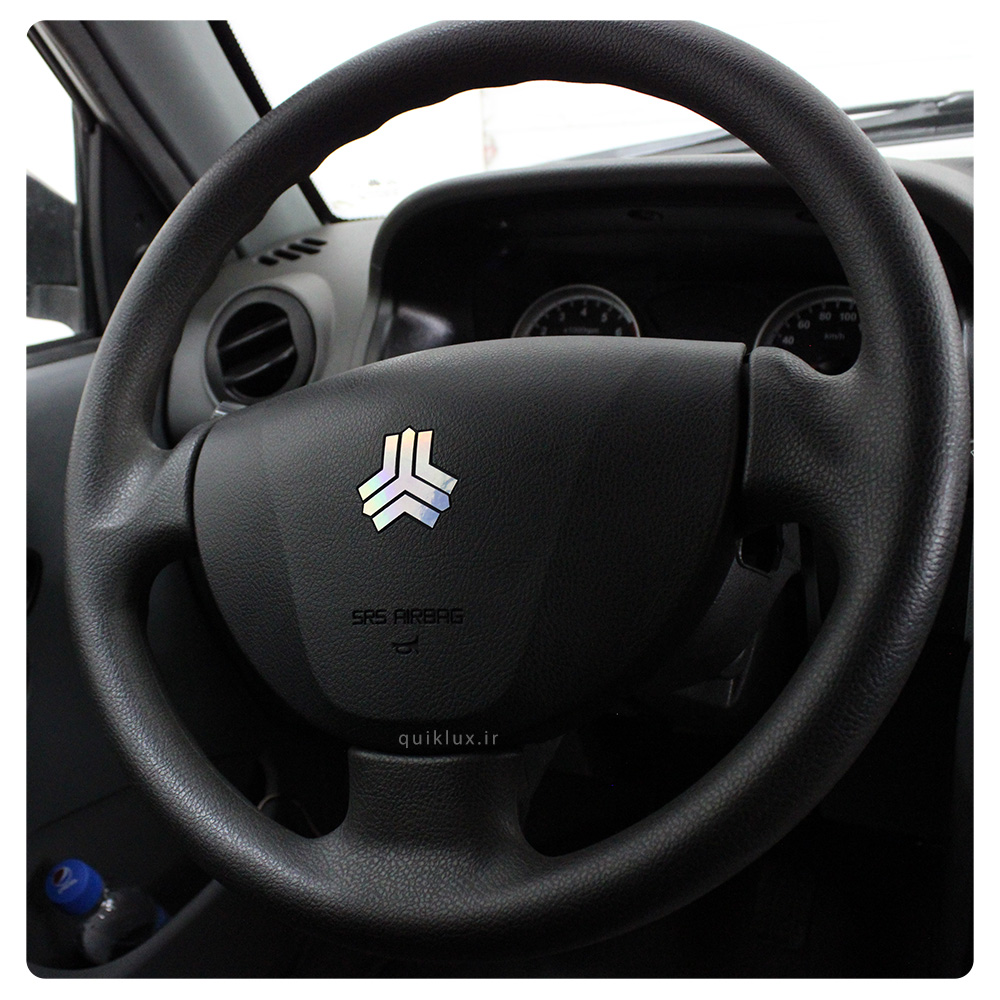 برچسب لوگوی هفت رنگ کروم روی فرمون مناسب برای فرمون کوییک تیبا و ساینا