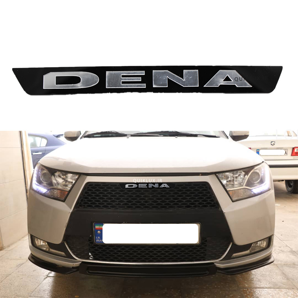 این قطعه ساخته شده از پلاستیک های گلس مشکی می باشد ک با ترکیب کریستال کرومی حروف DENA کاری جدید اسپرت می باشد ک با نصب آن به زیر آرم جلوی خودرو جلوه خاصی به نمای جلوی خودرو می دهد. این قطعه را می توان با چسب 2طرفه 1سانتی به راحتی زیر آرم جلوی خودرو دنا نصب نمود.