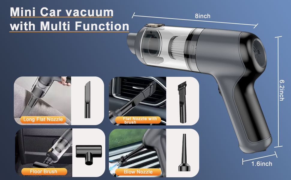 جاروبرقی قابل حمل خودرو با 3 لوازم جانبی کاربردی: برس کف ، ترکیب نازل چند منظوره به شما امکان می دهد زباله ها را به طور موثری در هر گوشه هر صحنه تمیز کنید: ماشین ، اتاق نشیمن ، آشپزخانه ، اتاق خواب و غیره.