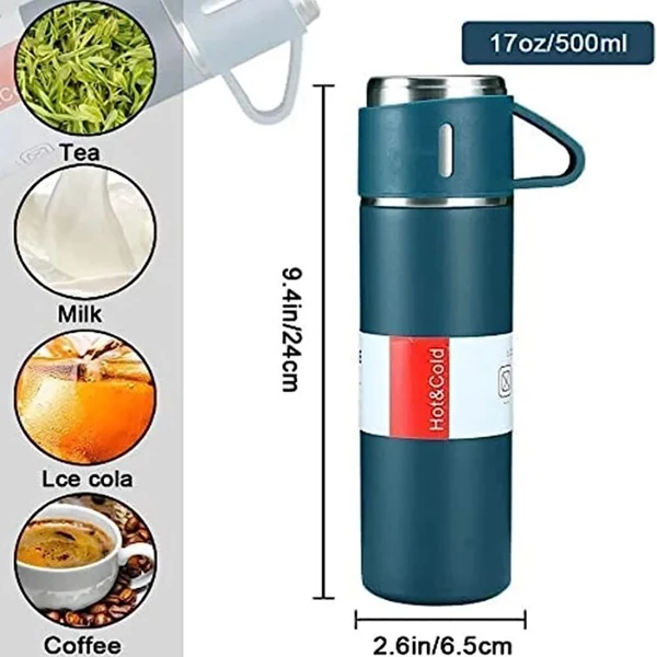 فلاسک مدل 3 کاپ VACUUM گنجایش 0.5 لیتر به همراه لیوان مجموعه 3 عددی