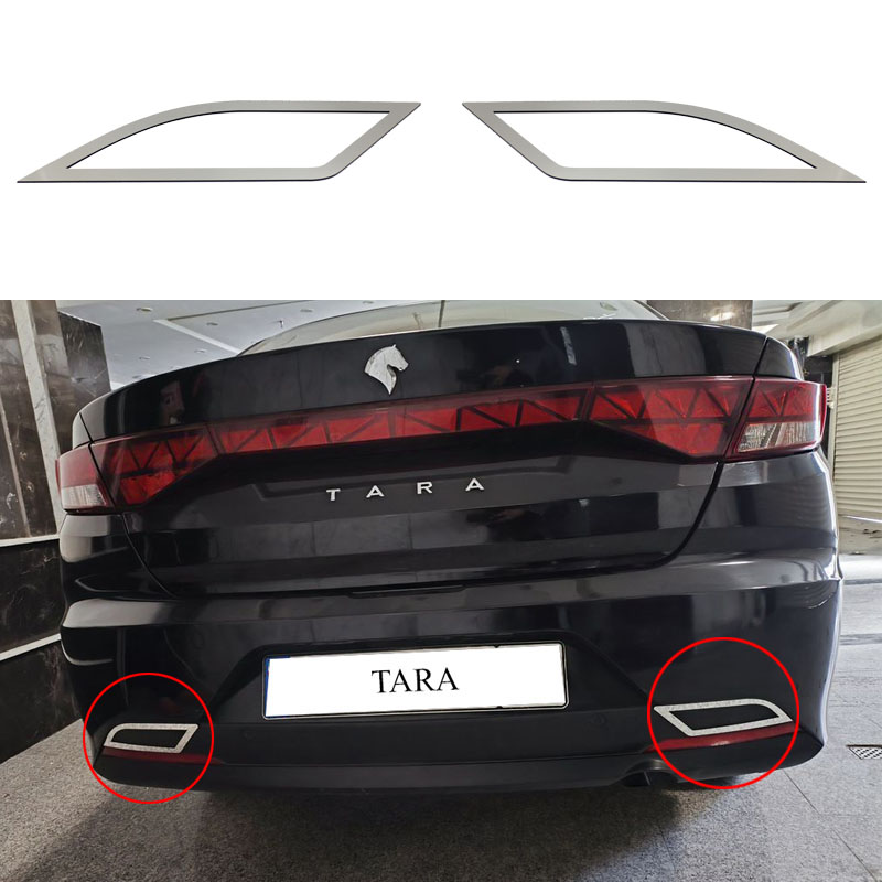 قاب طرح اگزوز عقب تارا یکی از محصولات تزئینی و زیباسازی خودرو است که بهصورت اختصاصی برای خودرو تارا طراحی شده است. این قاب از جنس پلکسی مقاوم ساخته شده و دارای روکش کروم براق میباشد که جلوهای اسپرت و لوکس به قسمت عقب خودرو میبخشد.