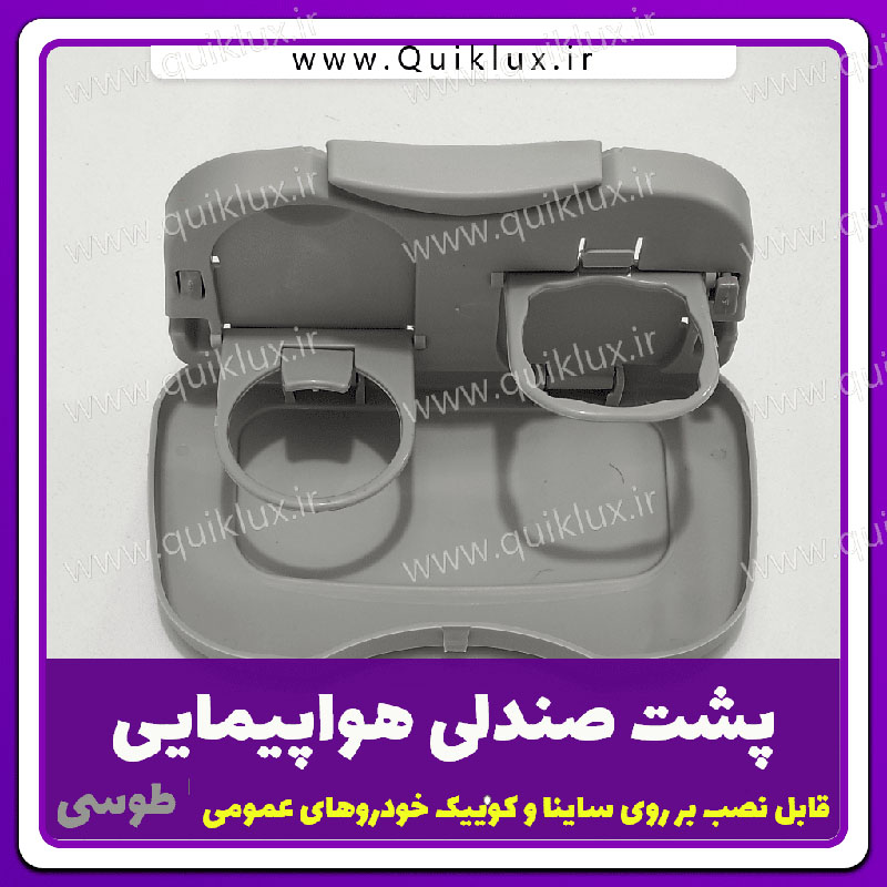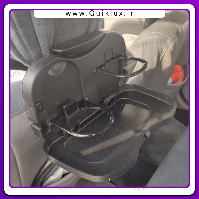 هنگام سفر و نشستن های طولانی مدت در خودرو، سر نشینان عقب برای قرار دادن بطری آب، لیوان و مواد خوراکی مختلف فضایی ندارند و احتمال ریختن مایعات و به هم ریختگی بسیار زیاد است. سینی و جا لیوانی خودرو ساخت ایران و دارای کیفیت بسیار بالایی می باشد و از جنس پلاستیک بهداشتی درجه یک در ابعاد 6x16x26 سانتی متر ساخته شده است. این سینی یا جا لیوانی به راحتی به پشت صندلی های جلو وصل می گردد و به دلیل تاشو بودن، در زمان عدم استفاده هیچ فضایی اشغال نمی کند. در زمان نیاز به راحتی آن را باز کنید، داخل سینی دو عدد جای لیوان و بطری تاشو وجود دارد و همچنین بر روی سینی می توان انواع خوراکی و میوه را قرار داد. در دو طرف کالا یک فرو رفتگی گیره مانند وجود دارد تا بتوانید پلاستیک ها و یا خرده ریزهای دسته دار را به آن متصل نمایید.