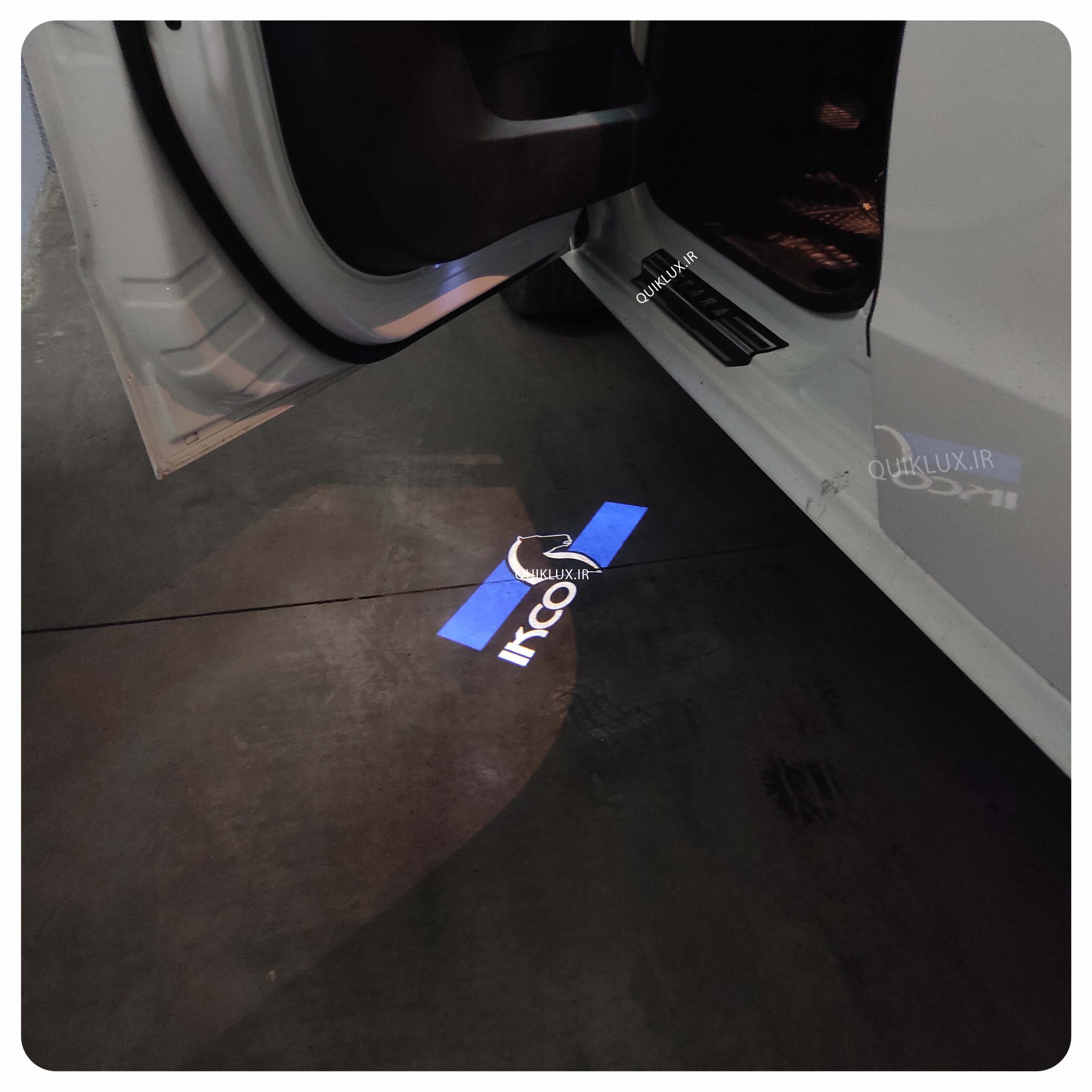 این چراغ ها که با لوگوی شرکت ایران خودرو روشن می شوند، هنگام باز شدن درب های جلو به راننده خوش آمد می گویند.