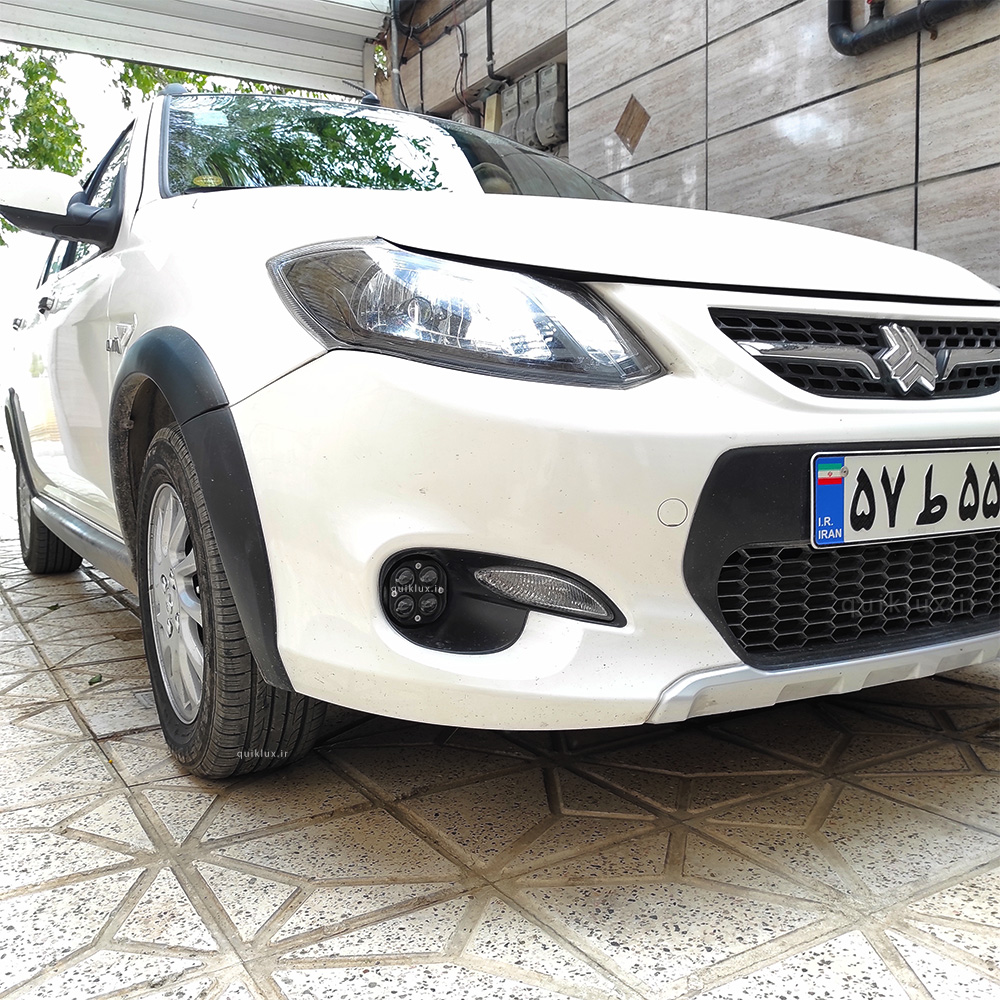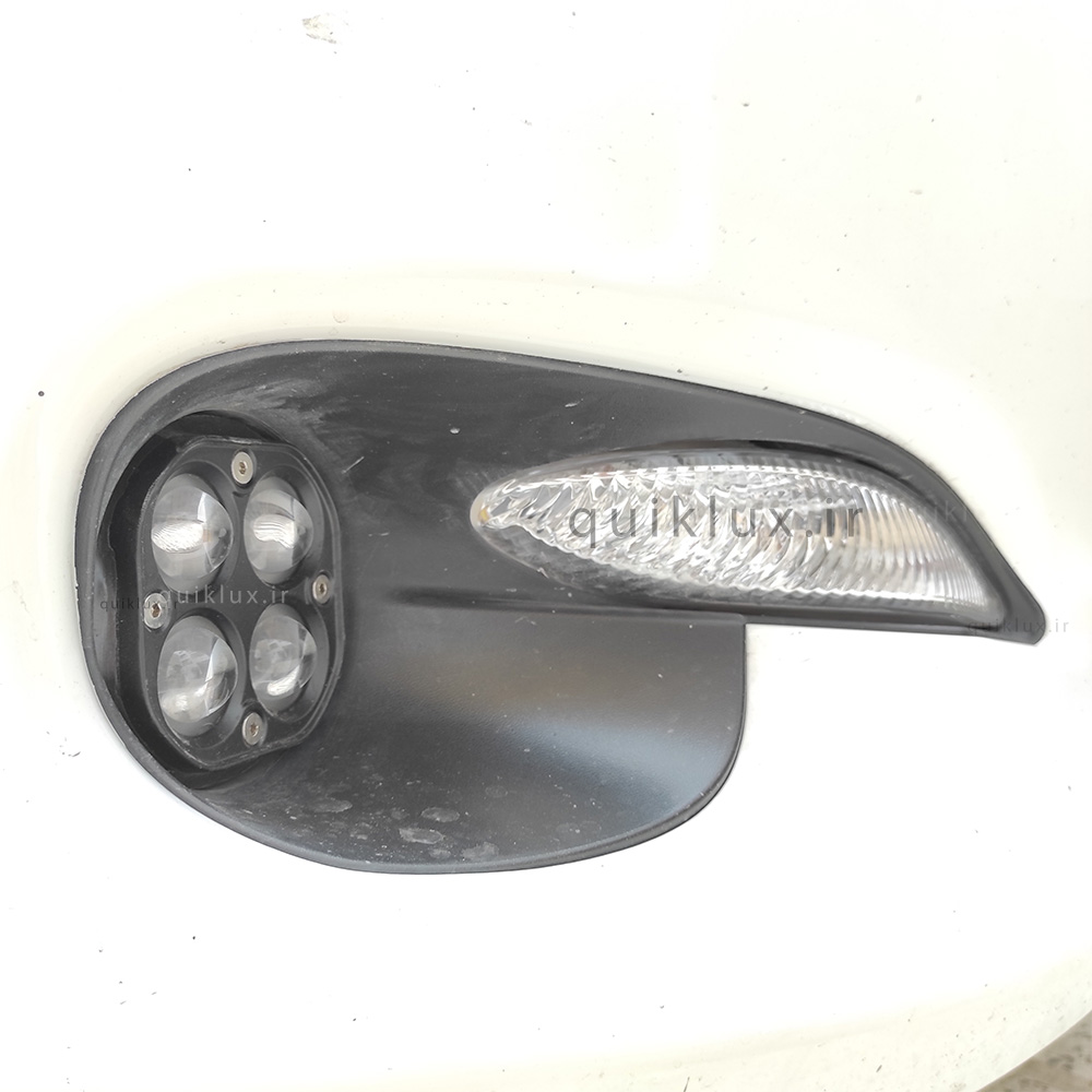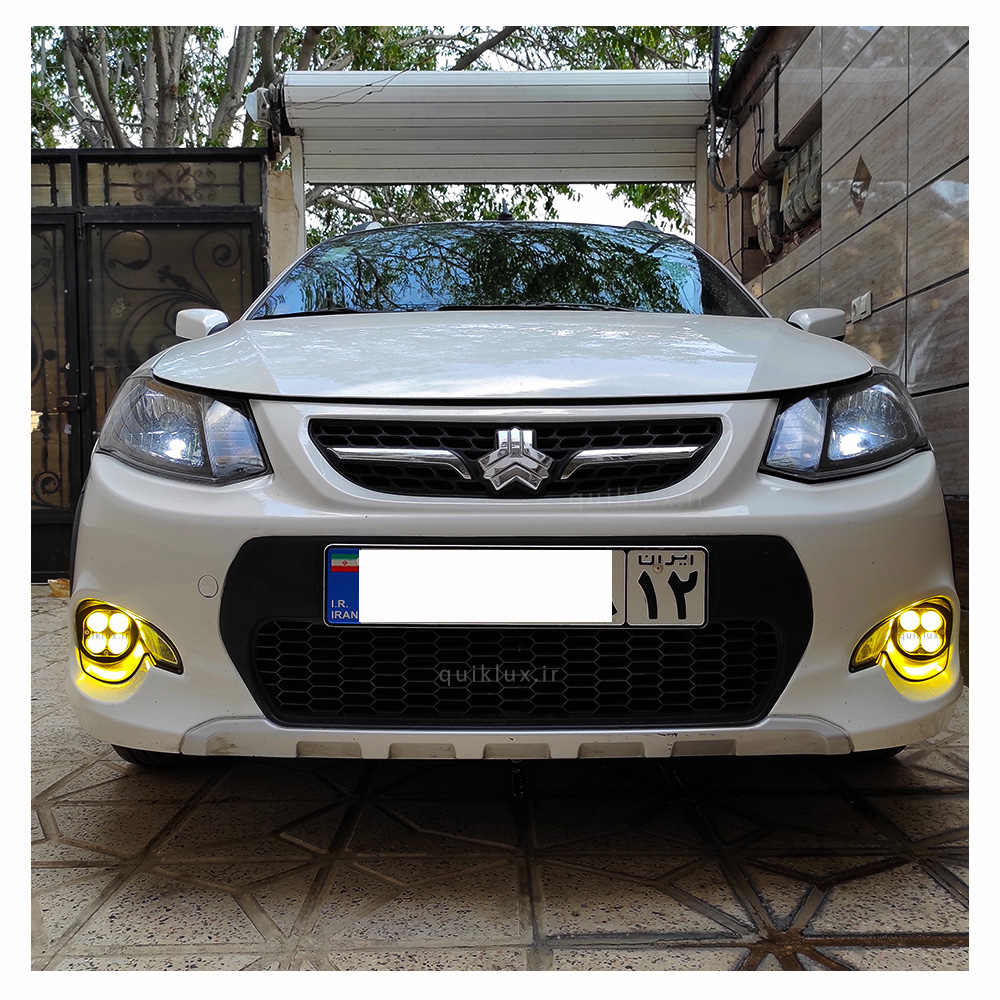 این محصول ساخته شده از مه شکن فابریک کوییک ساینا است که داخل مه شکن چراغ 2 حالته چهار لنز جای گذاری شده است و جنس چراغ از چهار چیپ قدرتمند هدلایتی و چهار لنز بیضی شکل با بدنه تمام الومینیوم ساخته شده و داخل چراغ جای گذاری شده است و چراغ داخلی محصول خارجی درجه 1 میباشد