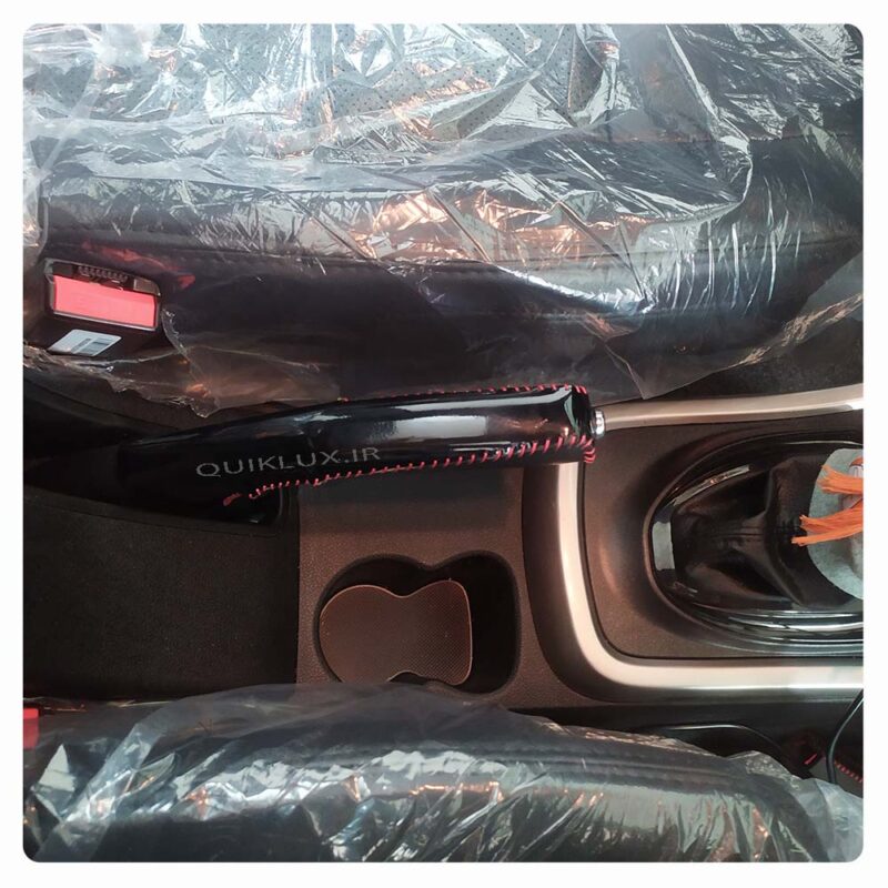 کاور ترمز دستی چرمی مدل SH26 رنگ مشکی پیانویی دوخت قرمز