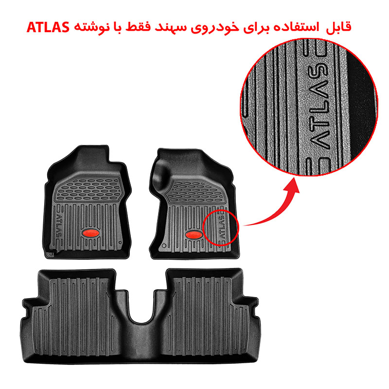 توضیحات: این کفپوش از نظر سایز و اندازه قابل استفاده برای خودروی سهند نیز می باشد فقط ATLAS روی آن نوشته شده است. در صورتی که مشکلی با این موضوع ندارید می توانید این محصول را برای خودروی سهند خود سفارش دهید.